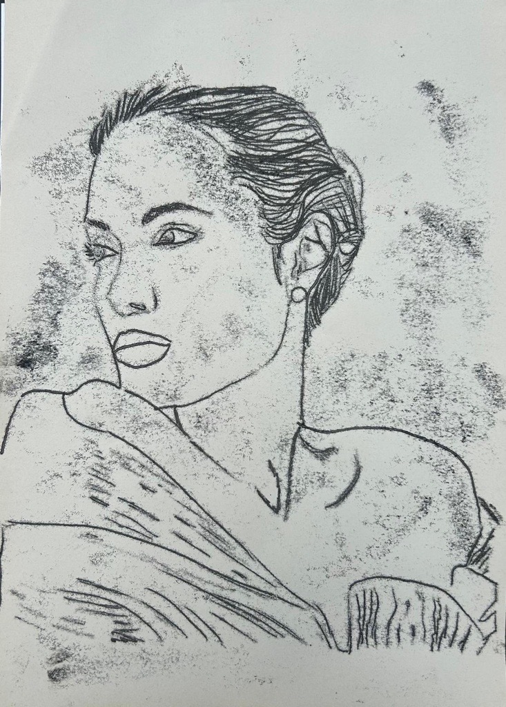 We used a simple transfer technique, where I placed a reference image over an inked surface and traced it with a ballpoint pen. The pressure caused the image to transfer onto the paper underneath – similar to the carbon paper method.