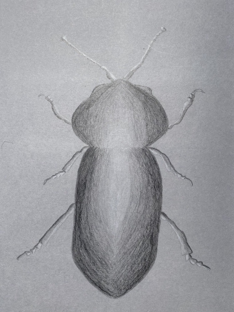 The second piece is a realistic pencil drawing of an insect, where I focused on symmetry, shading, and precision.